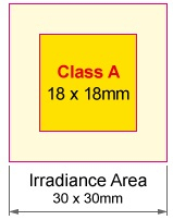 ![]() | 均勻性 在350-1800nm的范圍內(nèi),1太陽的計算值大約是94.4 mw/cm。 工作距離:大約220毫米可以通過光強度控制來調(diào)節(jié)由燈壽命引起的光強度下降。超過A類區(qū)域的大小是參考值。請注意,燈的輸出因制造批次而異。它需要分別檢查光強度。 |