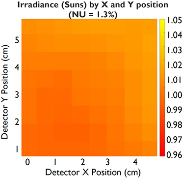 SciSun 太陽模擬器輸出非常均勻的光斑,其不均勻性&le;2%,如圖所示