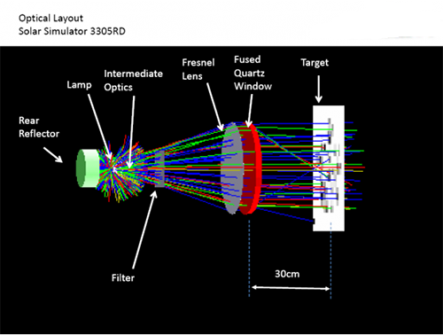 太陽光模擬器設(shè)計(jì)為產(chǎn)生高度準(zhǔn)直的光,并被開發(fā)為在真空室內(nèi)運(yùn)行。