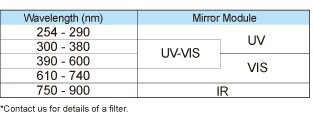 Mirror module UV Type(250-385nm), UV-VIS Type(300-600nm),